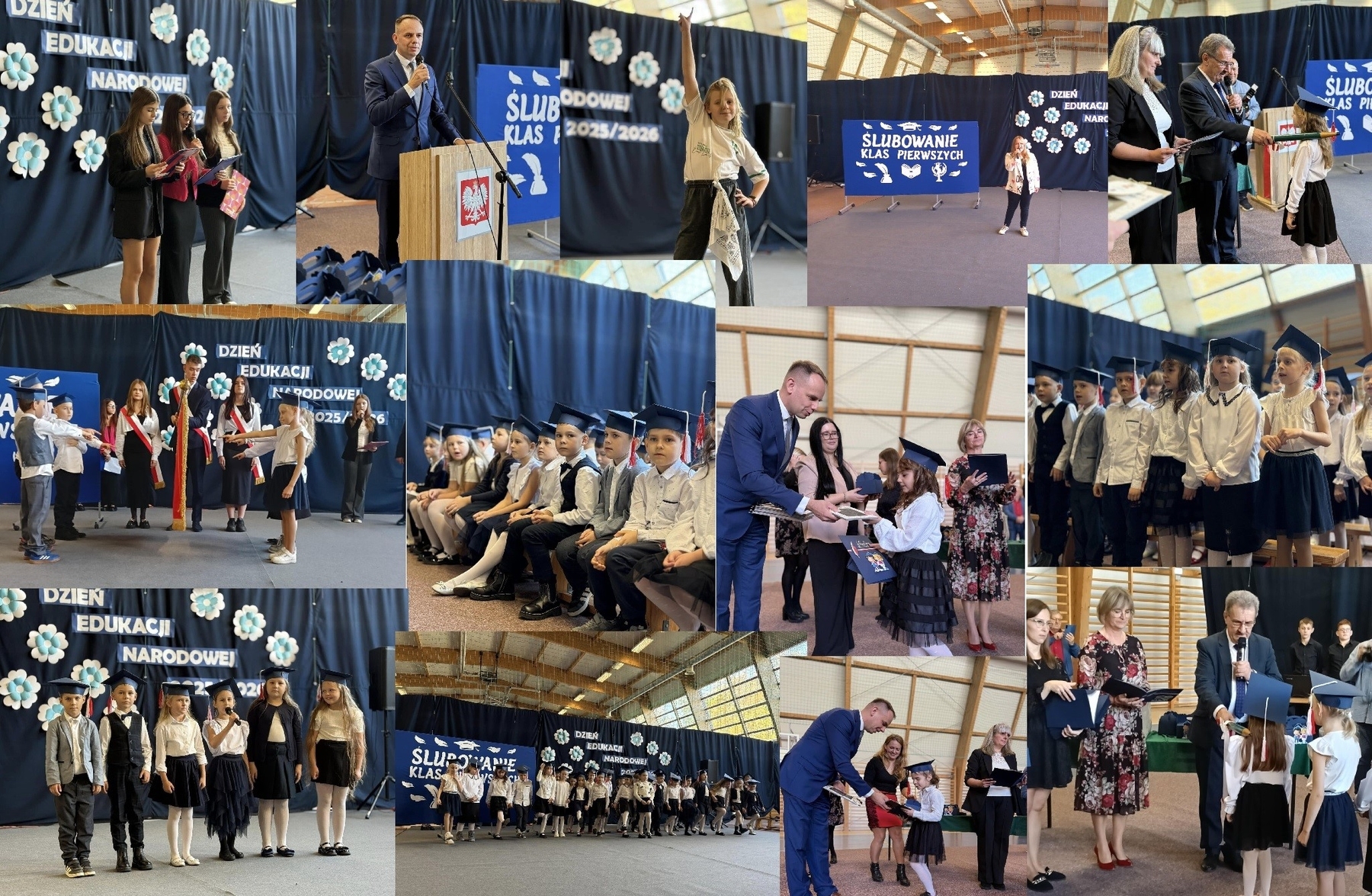 Dnia 15 października 2025 r. w naszej szkole odbyła się wyjątkowa uroczystość – pasowanie na ucznia pierwszoklasistów połączone z obchodami Dnia Edukacji Narodowej. W uroczystości udział wzięli zaproszeni goście, rodzice pierwszoklasistów, dyrektor szkoły oraz nauczyciele, pracownicy i społeczność uczniowska. Dyrektor szkoły Krzysztof Ficek oraz Wójt Gminy Gruta Waldemar Kurkowski w swoich wystąpieniach złożyli życzenia nauczycielom i wszystkim pracownikom szkoły z okazji Dnia Edukacji Narodowej oraz dzieciom klas pierwszych z okazji ich pasowania. Pan Wójt podziękował za codzienny trud, zaangażowanie i serce wkładane w wychowanie oraz edukację młodego pokolenia. Życzenia z okazji Dnia Nauczyciela złożyła również przedstawicielka Rady Rodziców – Pani Aleksandra Proc.